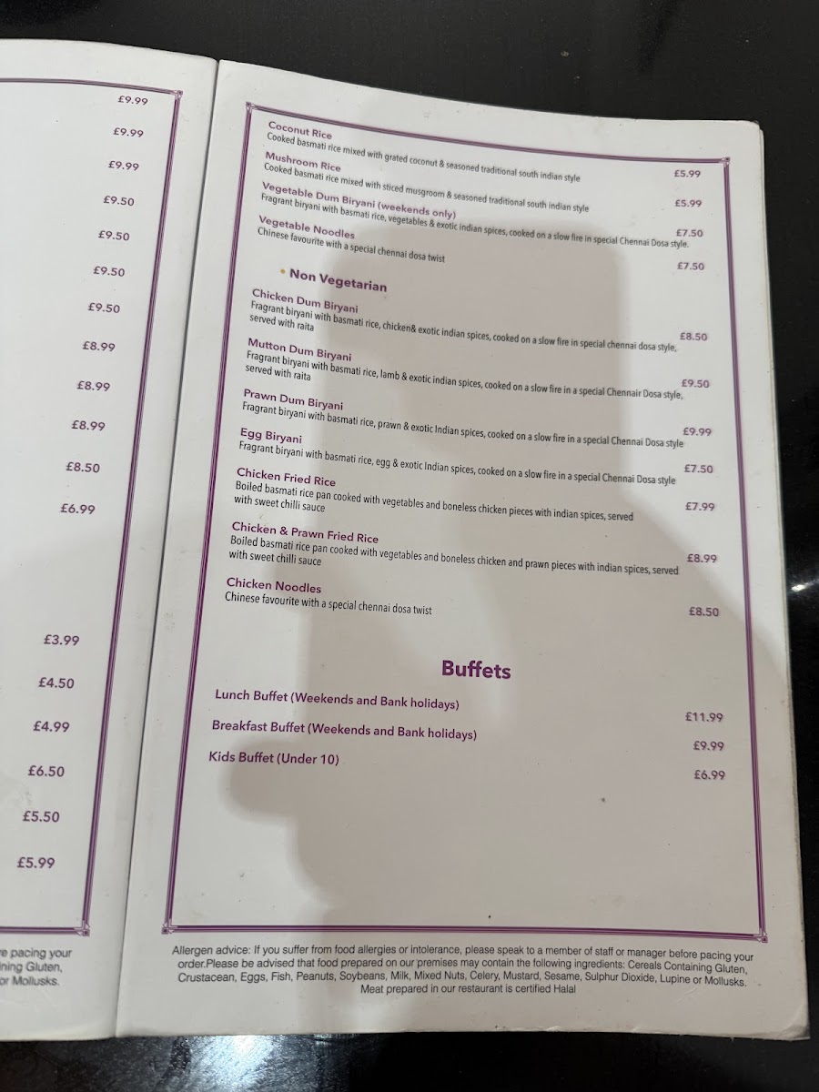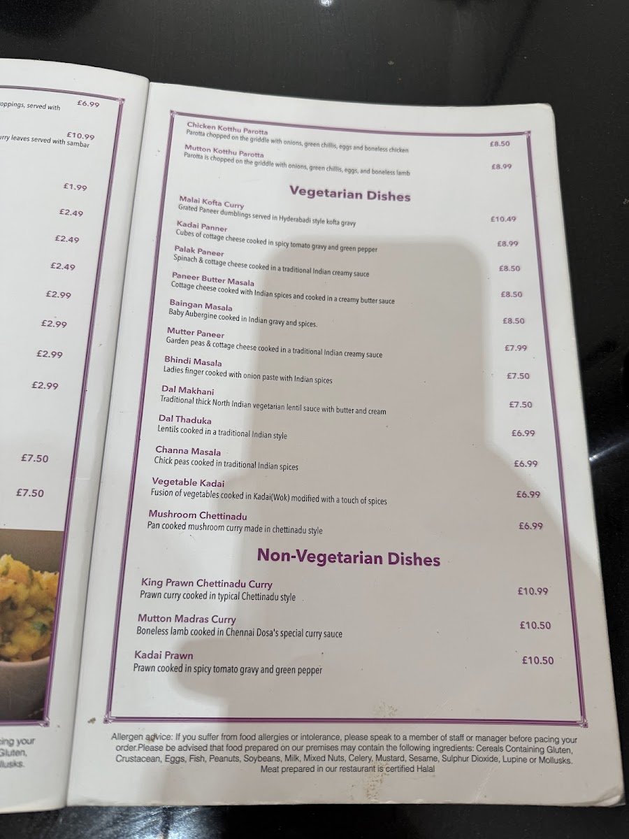 Vegetarian options like Paneer Butter Masala and Dal Makhani are clearly distinguished alongside a variety of meat and seafood preparations, ensuring a diverse experience for all tastes. The atmosphere at Chennai Dosa Swindon is calm and unpretentious, making it a good fit for enjoying familiar, well-made Indian dishes without the rush of a busy urban eatery.