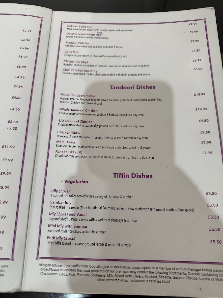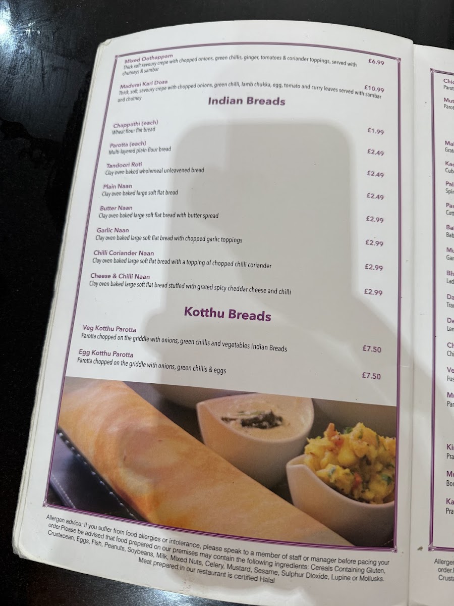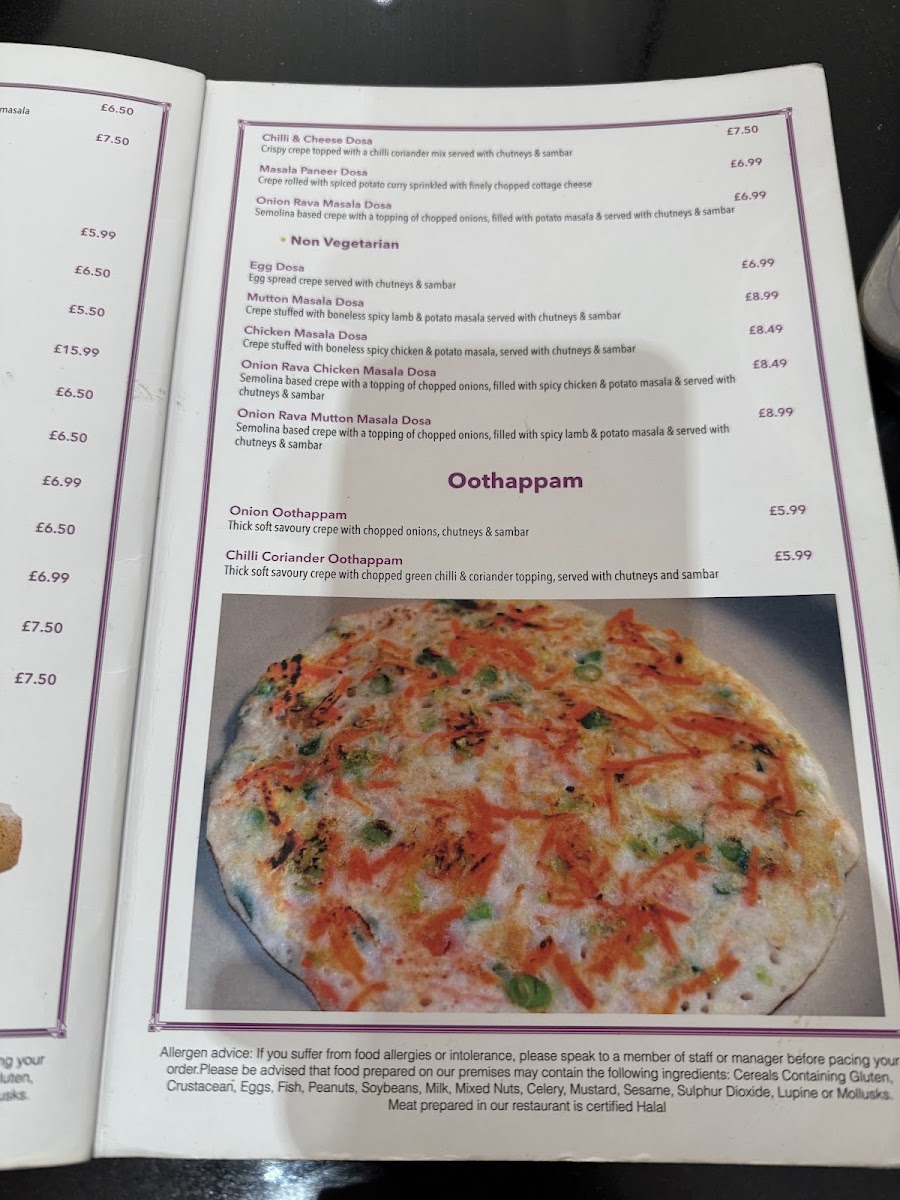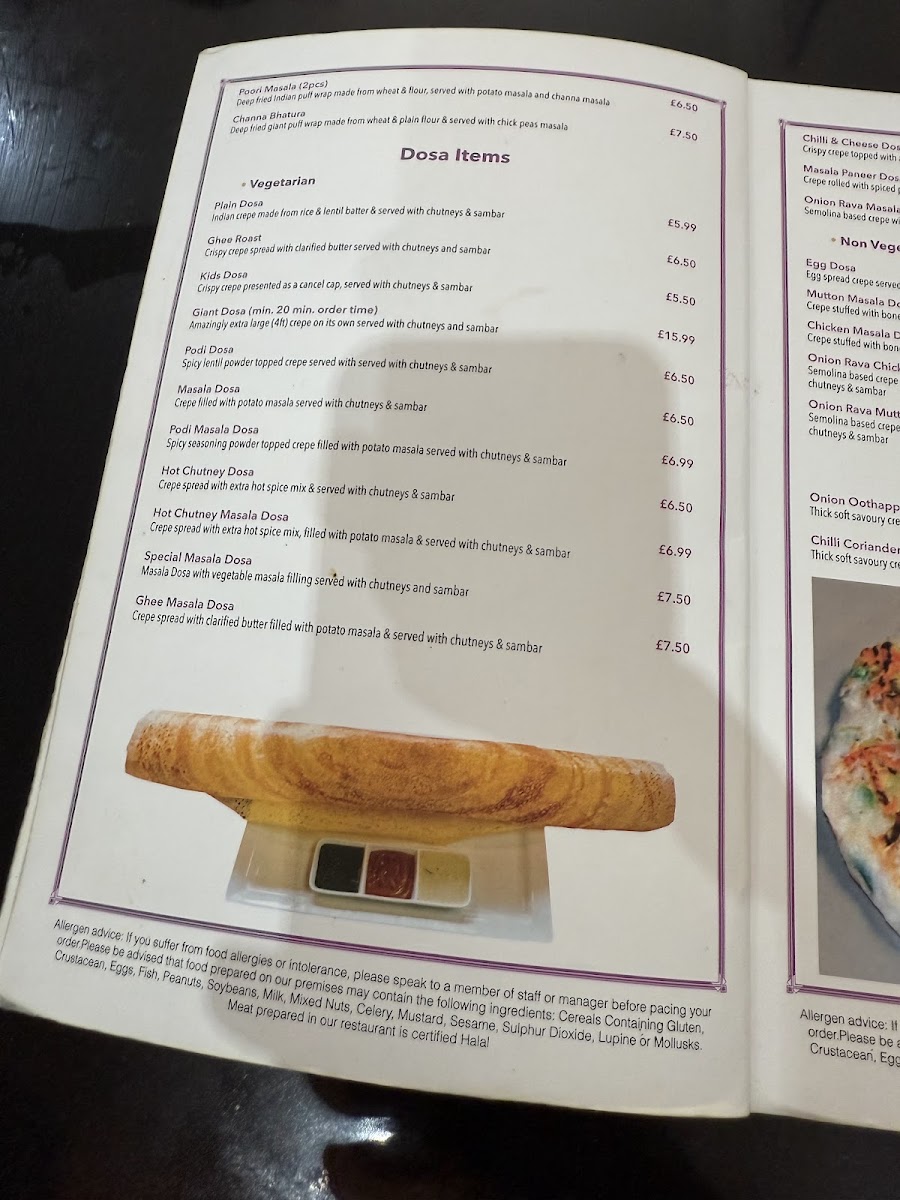 Chennai Dosa Swindon Menu